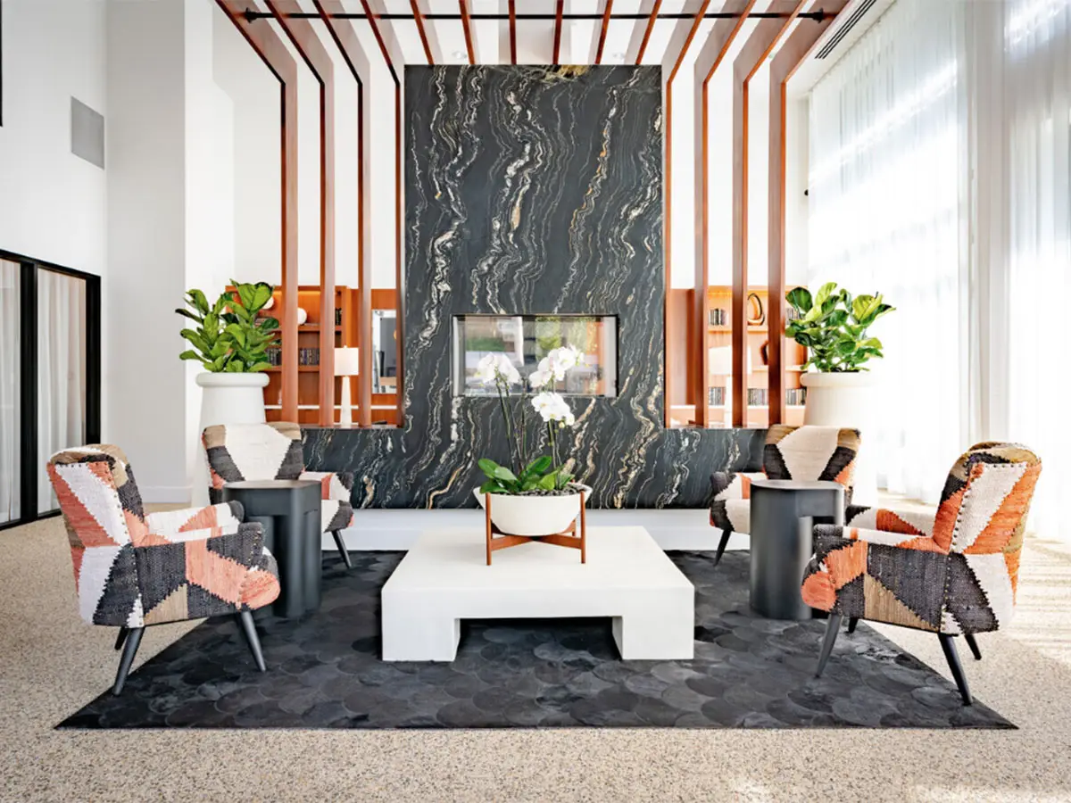 Client: AMCAL | Location: Woodland Hills, CA | Building type: Multi-Unit ResidentialScope: New Construction, Lobby, Gym, Pool Deck, Common AreasAFTER