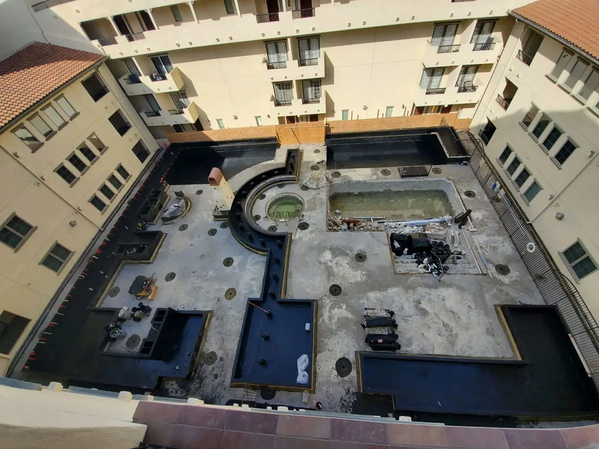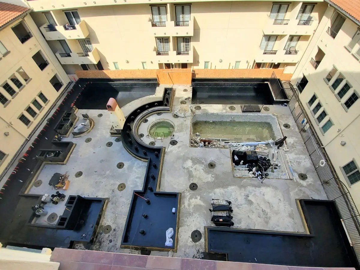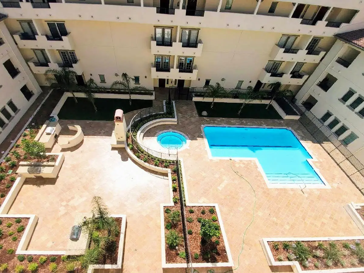 Client: Private Owner | Location: Woodland Hills, CA | Building type: Multi-Unit ResidentialScope: Courtyard Renovation, Pool Area, Planters, Hallways, BBQ Area